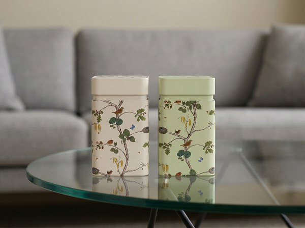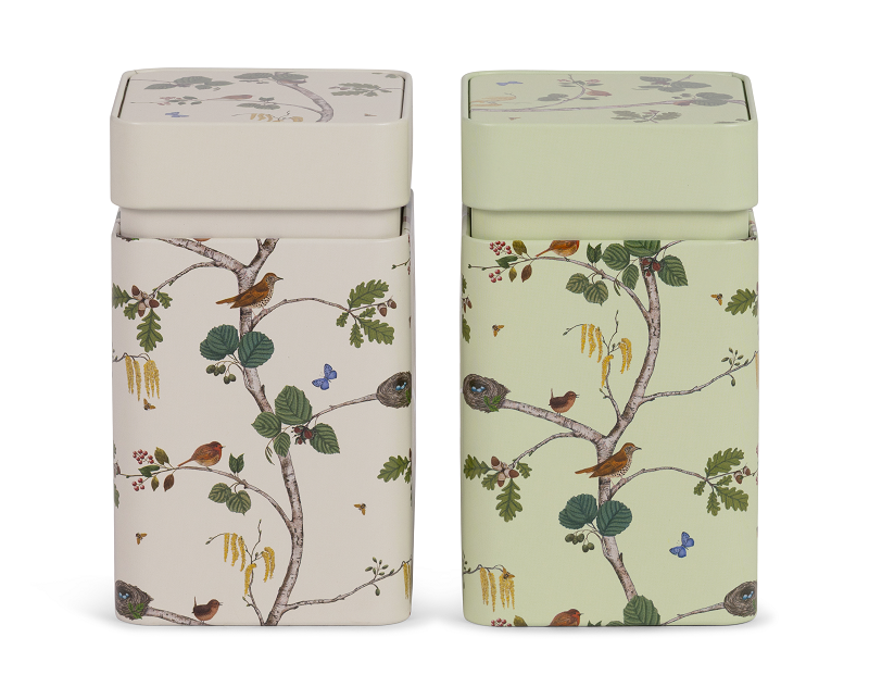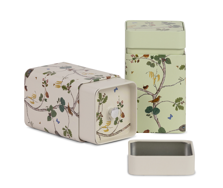 Matte und glänzende Designobjekte, sowie eine aufwendige Bodenbedruckung machen diese Dosen zu einem echten Hingucker.