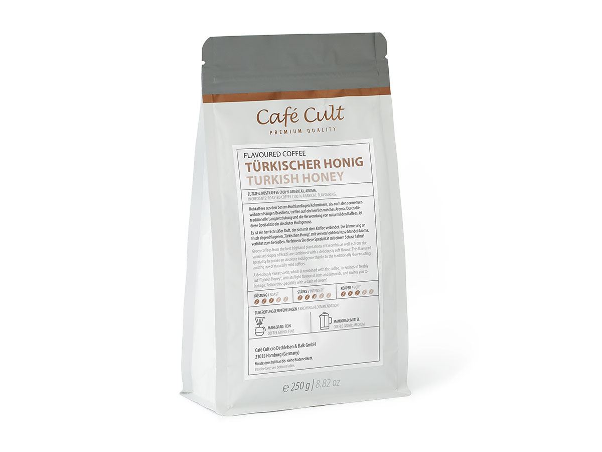 Es ist ein herrlich süßer Duft, der sich mit dem Kaffee verbindet. Die Erinnerung an frisch abgeschlagenen "Türkischen Honig", mit seinem leichten Nuss-Mandel-Aroma, verführt zum Genießen. Verfeinern Sie diese außergewöhnliche Spezialität mit einem Schuss Sahne und erleben Sie das Besondere!