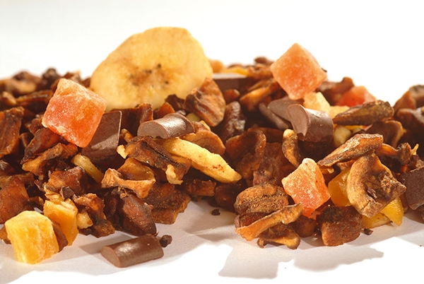 Schokoladen-Freunde aufgepasst! Diese Komposition ist der Hit. Cremig-sahniger Schoko-Bananen-Geschmack. Zusammensetzung: Kakaobohnenstücke, Papayastücke (Papaya, Zucker), Mangostücke (Mango, Zucker, Säuerungsmittel: Zitronensäure), Schokoladenstücke (5%) (Zucker, Kakaomasse, Kakaobutter, fettarmes Kakaopulver, Emulgator: Sojalecitin), Bananenchips (4%) (Bananen, Kokosnussöl, natürliches Bananenaroma), Aromen, Joghurtgranulat (Glukosesirup, Magermilchjoghurt, Zucker, modifizierte Stärke, Säuerungsmittel: Zitronensäure).