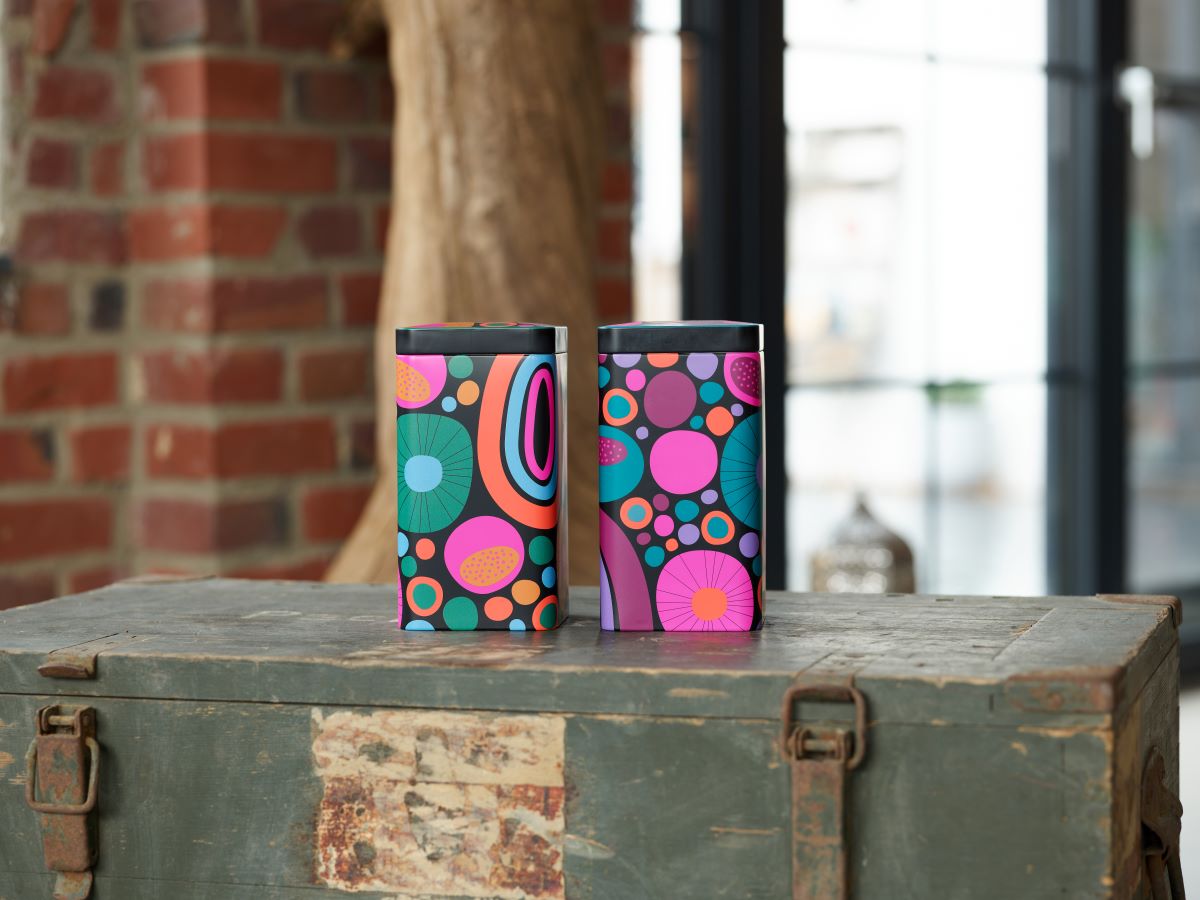 Die Dosen sind jeweils für max. 500g Tee geeignet (abhängig vom Volumen) und haben Außenmaße von 98 x 98 x 189 mm.