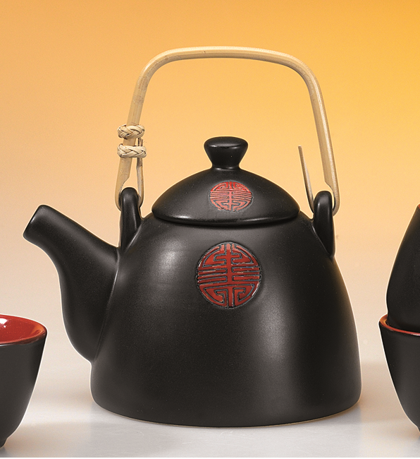 Diese schöne Teekanne ziert das chinesische Schriftzeichen "Langes Leben". Der raffinierte Henkel gibt dem Ganzen noch eine weitere besondere Note. Die Keramik-Kanne hat ein Fassungsvermögen von ca. 700ml.