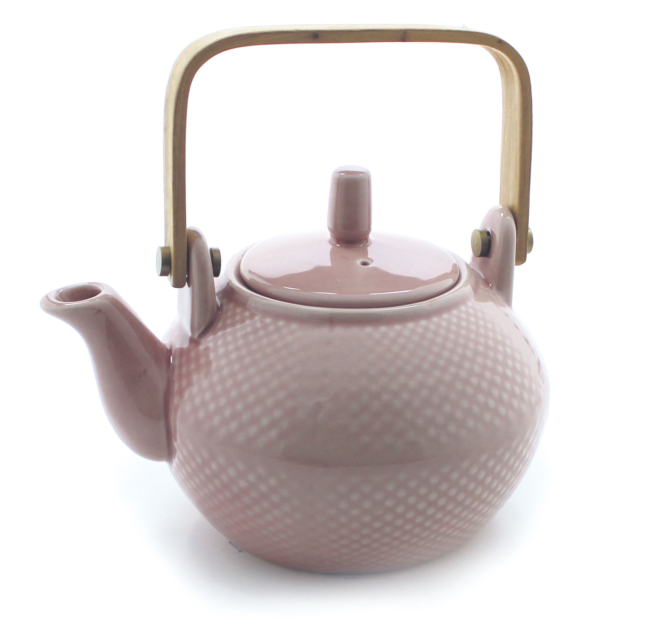Diese schöne rosefarbene Teekanne hat ein Fassungsvermögen von 0,5 Litern, einen praktischen Edelstahlfilter und einen abnehmbaren Holzhenkel.