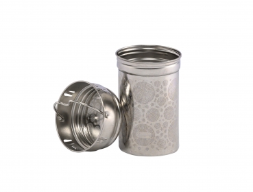 Die doppelwandige Edelstahl Trinkflasche LEEZA® "Eucalyptus" enthält ein 2-tlg. Edelstahlsieb und ist geeignet für ca. 500 ml Heiß - oder Kaltgetränke. Der praktische Klappdeckel ist mit einer Hand zu öffen.